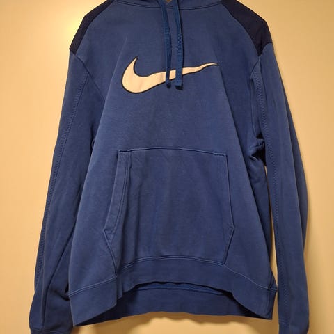 Miesten collegehuppari, NIKE. Koko M, väriltään harmaansininen. Kengurutasku edessä. Siisti ja hyväkuntoinen.