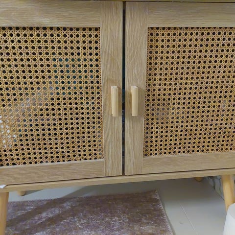 Myydään upea uudenveroinen puukaappi rottinkiovilla.