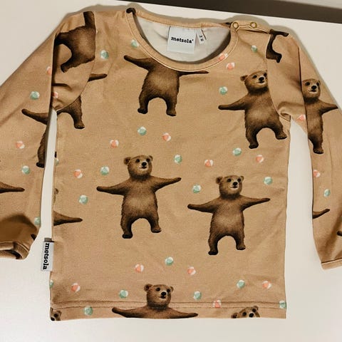 Metsolan musta pitkähihainen paita, jossa hopeanhohtoisia kauris-kuvioita. Kokomerkintä 80, mutta on melko pientä kokoa joten ottaisin käyttöön koossaa 74. Paljon käytetty ja pinnassa on nukkaa sekä kauluksessa ommel osittain purkautunut (ei kuitenkaan minusta huomaa jos ei tarkkaan tutki). Postitus Toridiilillä tai nouto Espoon Perusmäestä