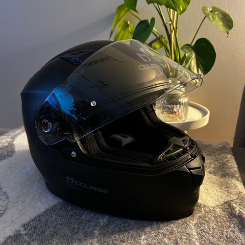 Course Raider koko s 55-56cm. Pari kertaa käytettymoottoripyöräkypärä todella hyvässä kunossa. Löytyy sisäinen visiiri ja vaihdettava läpinäkyvä ulkovisiiri