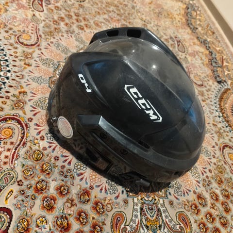 Kypärä irrotettavilla pörrökorvilla. Ei kaaduttu tai heitelty.
