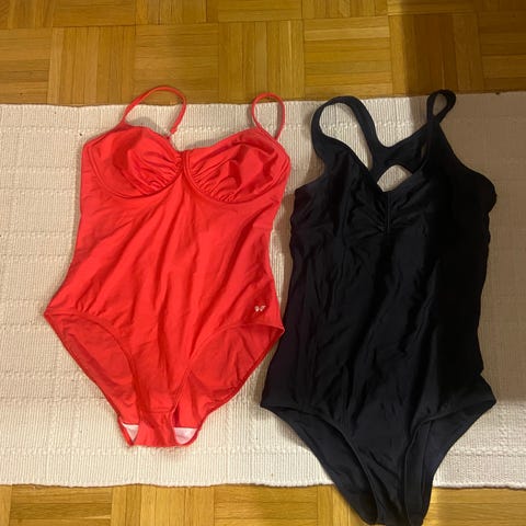 Naisten kunnollinen kokouimapuku.Ei valu olkapäiltä ja luotettava puku uintiharrastukseen.Itselle liian iso.RY 119-125 cm,vyöt 104-110 cm,lant.129-135 cm,pit.170-