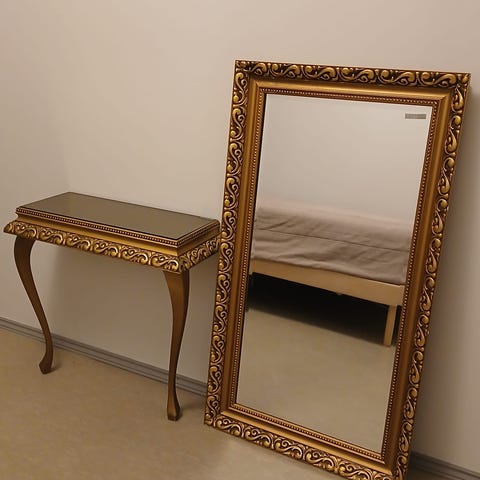 Iso koristeellinen peili ja konsolipöytä