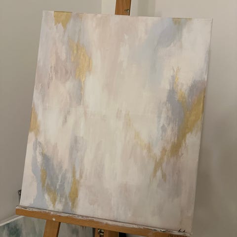 Abstrakti taulu vihreä, valkoinen ja kulta
