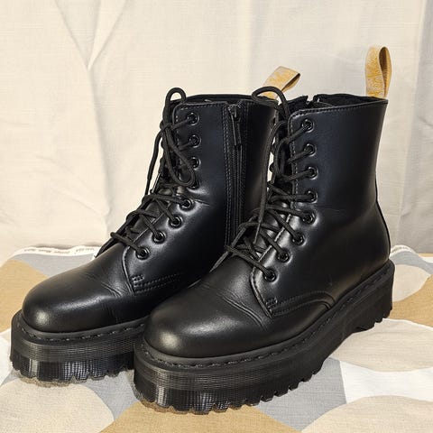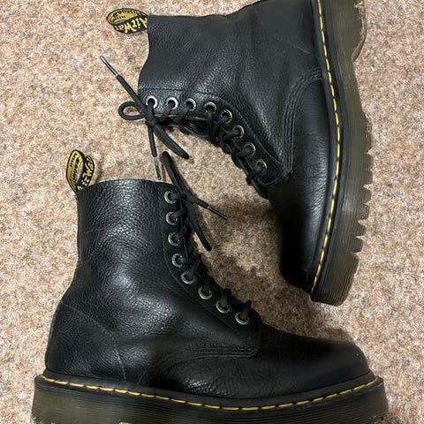 Käyttämättömät mustat nahkaiset Martensin platform nilkkurit