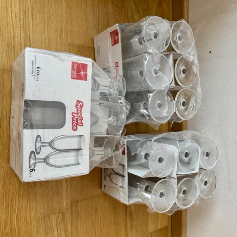 Bormioli Rocco lasiset juomalasit, joissa on koristeellinen kuviointi.