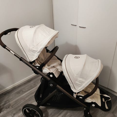 Cybex Gazelle S värissä black-moon black. Vuoden 21, kahdella perheellä ollut käytössä. Käytönjälkeä löytyy, mutta kaikki ominaisuudet toimii, niinkuin kuuluukin. Suoraan käytöstä, joten ratasistuinten pesu jää ostajalle, mikäli tarvetta on.