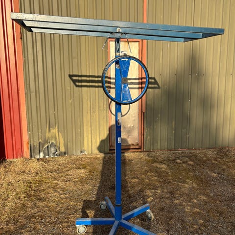 Kyläsepän tekemä, paljon käytetty mutta toimiva hissi. Nosto 1,7 - 2,8 m. Vain nouto