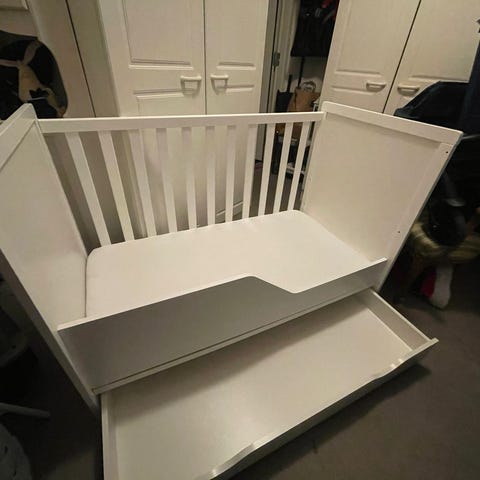 Patja mukaan jos haluaa. Tätilä käytössä ollut. Voisi melkeinpä sanoa että uudenveroinen kunto. Ihana vaaleansininen nalle kuviointi .