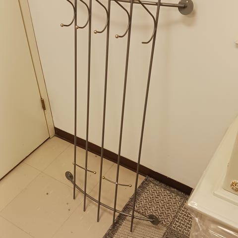 Maali lähtenyt muutamasta kohdasta naulakon päältä mutta jäljet ovat melko huomaamattomat, saa helposti maalattua piiloon.