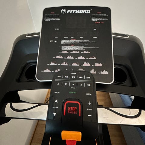 FitNord juoksumatto. Lämpimässä tallissa säilössä. Kasattu valmiiksi ja kaverina nostan kärryyn hakijalle.