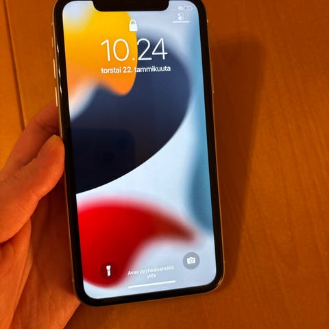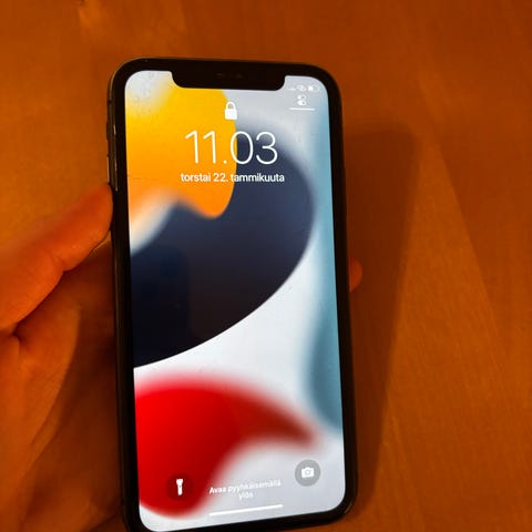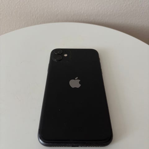 Apple iPhone 11 -mallinen älypuhelin, jossa on 64 gigatavua tallennustilaa. Puhelimessa on musta väritys. taka lasi mutta ei taka kamera kuori tulee mukana sekä laturi jos sitä vaatii