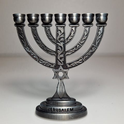 Koristeellinen pieni 7-haarainen kynttilänjalka Menora, kork.10 cm.