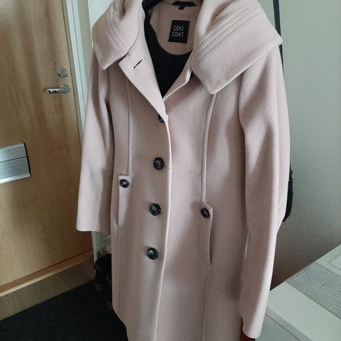 Dixi Coat Talvitakki on villainen ja väriltään beige. Takki on väljän mallinen ja koko 36. Pituus 85, kainalo-kainalo mitta 59cm.
