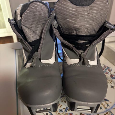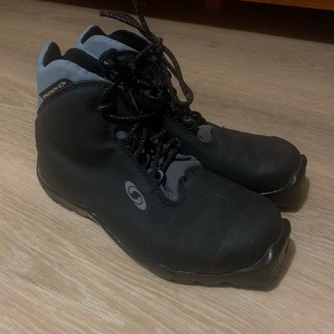 Salomon hiihtokengät, harmaat, koko 40. SNS sitrisiin. Ehjät ja muuten kelpo kunnossa, mutta vaalea väri joten jälkiä on.