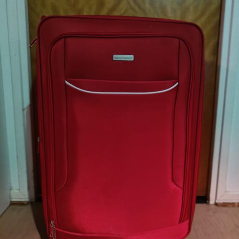 Myyn suuren matkalaukun. Kahvassa halkeama, näkyy kuvassa, toimii kuitenkin normaalisti. Nouto Sipoon Söderkullasta.