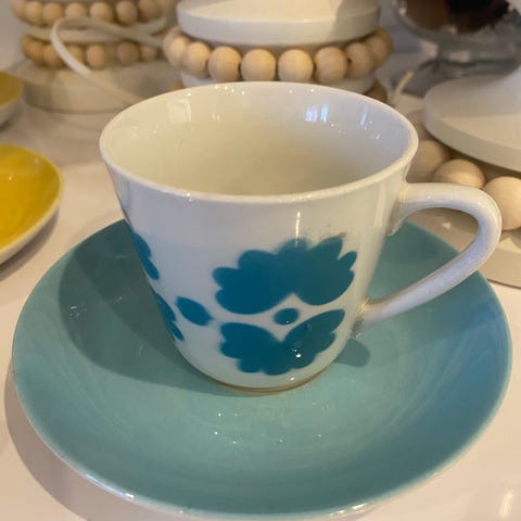 Retro puhalluskuvio lautanen kahvitassi muki keltainen