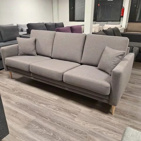 Myynnissä erittäin laadukas Shapesin valmista 3:n istuttava sohva. Shapes malliston sohvat valmistaa Adea Oy Kauhajoella. Sohva on muotokieleltään ajaton. Korkeat jalat tuovat sohvaan ilmavuutta. Kapeat käsinojat maksimoivat istuin leveyden. Istuinmukavuus sohvassa on kimmoisan ryhdikäs. Ei kova, eikä pehmeä. Sohvassa erittäin tukeva puurunko joka luonnollisesti ehjä. Istuin ja selkätyynyjen kankaat ovat irroitettavissa pesuun. Sohvan tyynyt upeassa ryhdissään. Kankaat siisti kuntoiset. Sohvaan on tehtaalta lähtiessään valittu ympäriverhoillut istuin ja selkätyynyjen kankaat. Tämä luonnollisesti tuplaa kankaiden, että tyynyjen käyttöiän. Korkeiden jalkojen ansiosta puhtaana pito sohvan alta on helppoa. Tämä sohva on laatua ja istuinmukavuutta etsivän valinta tarjous rimpun hinnalla. Sohvan hinta: 669e.