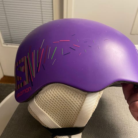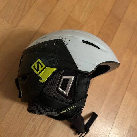 Salomon kypärä, koko S, väri vaaleansininen ja valkoinen. Kypärä soveltuu pääsuojaksi esimerkiksi talviurheiluun ja sisältää pehmustetun sisäosan ja säädettävän leukahihnan.