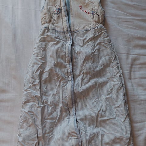 Froteinen Pikkuset-merkin unipussi Ivana Helsingin autokuosilla. Käytön jäljet kuvissa.
