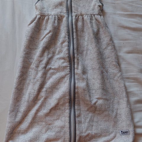 Ikean vanutäytteinen unipussi puuvillaa. Taakse tehty läpivienti turvavyötä varten, jotta voi käyttää myös turvaistuimessa, ostajan halutessa voin ommella sen umpeen.