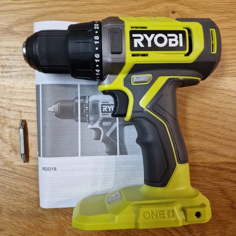Käyttämätön erittäin kompakti Ryobin RPD18C iskevä akkuporakone.