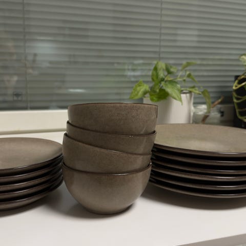 Todella hyvässä kunnossa oleva tyylikkään rouhea astiasto. Myydään ensisijaisesti pakettina, johon kuuluu: