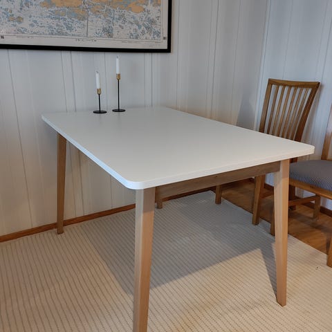 Myydään muuton tieltä pois hyväkuntoinen ja melkein uutta vastaava ruokapöytä neljälle hengelle. Pöytälevyn väri on vaalea tammi ja materiaaliltaan tammijäljitelmäviilua. Jalat mustaa terästä.