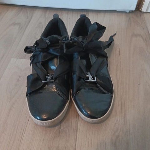 Todella vähällä käytöllä olleet kengät. Myydään hyvään käyttöön, pois pölyttymästä. Koko 38. Musta-valkoiset, sisältä pinkit.