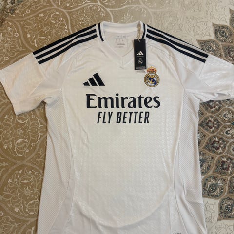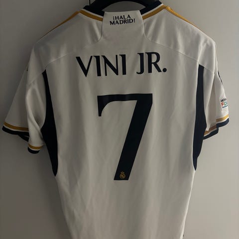 Myydään hyvässä kunnossa oleva Real Madrid pelipaita kokoa M. Edessä muutama pieni tahra, selässä Vini Jr #20. Postikulut 8,90€ tai nouto Espoosta. Myös toridiili sopii.