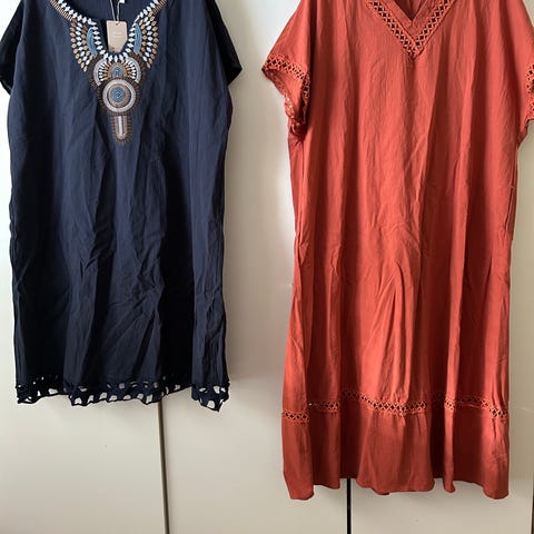 Rock Rebel -merkkinen 2XL kokoinen mekko, jossa etuosa lyhyt ja takaosa pitkä. Itselle etuosa liian lyhyt.