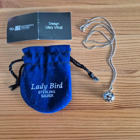 Uusi "Leppäkerttu"-kaulakoru. Hopeaa. Pituus 80cm. Samettipussukassa.