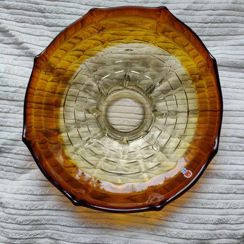 -Kansallis-Osake-Pankin logolla varustettu, ruskea lasilautanen, virheetön, valmistanut Humppila Crystal, halkaisija n. 27 cm.