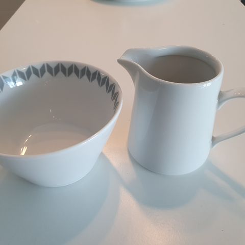 Nämä on annos maljat + kermakko ja sokerikko . Lugnet keramik , valmistettu -95. Käyttämättömät €25,-
