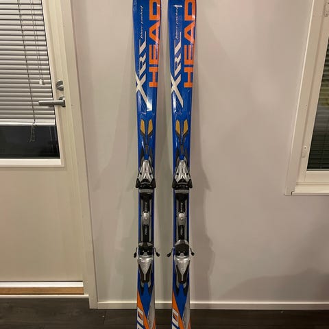 Head XRX laskettelusukset, pituus 163 cm, väri punainen. Sukset ovat varustettu siteillä. Hyvä, vakaa suksi aloittelijalle.