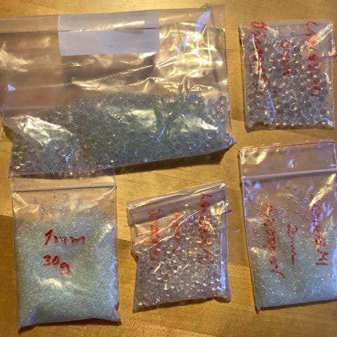 Lasihiekkaa, kvartsihiekkaa sekä mini posliinilaattoja askarteluun, 2 euroa, nouto tai lähetys