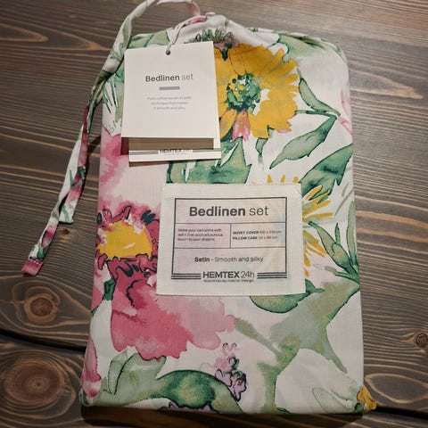UUSI Hemtex kukallinen pussilakanasetti (puuvillasatiinia)