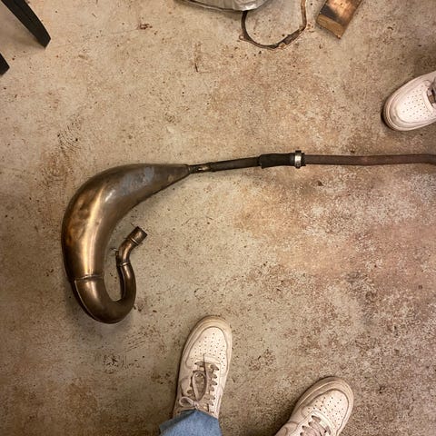 Elikkä detsin vakioputki. Ehkä ensimmäinen kuri poistettu? Paisarissa ja äänen vaimentajassa ainakin kurit vielä sisällä. Mopo kulki putkella ~50kmh