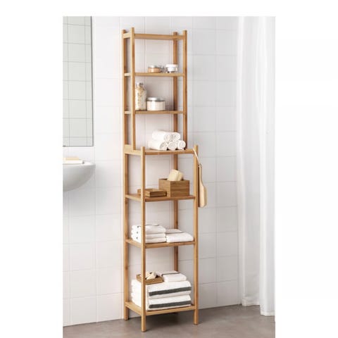 Ikea Rågrund bambuhyllykkö kylpyhuoneen sisustukseen ja säilytykseen. Kunto uutta vastaava, ollut meillä käytössä reilun vuoden kylpyhuoneessa.