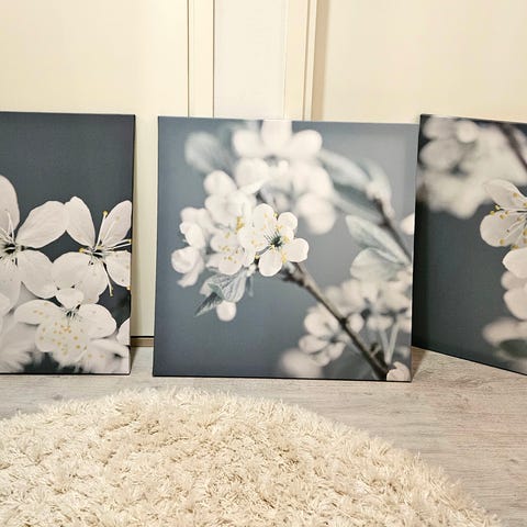 Ikean Pjätteryd Canvas tauluja 3 kpl. Kaikki ovat kokoa 25 cm x 25 cm.