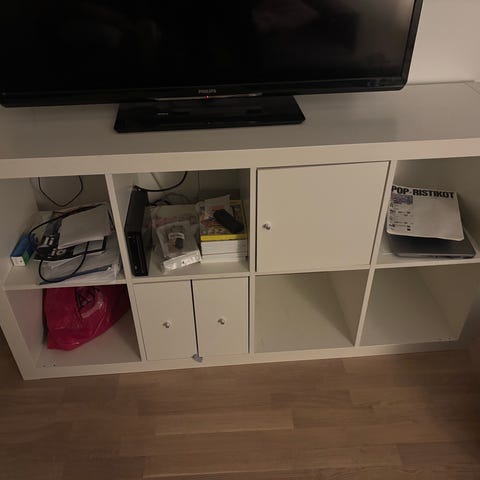 Valkoinen ikea kallax hyllykkö.