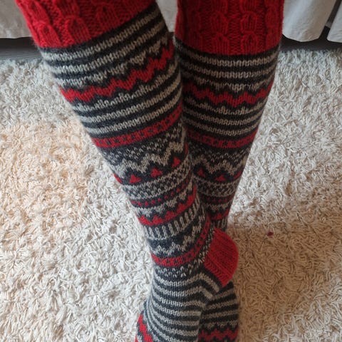 Myydään JonDesing brändin neulemallilla tehdyt Jonsukat, suunnittelija Jonna Kalliomäki. Minulla on myyntilisenssi 3 tuotteen myyntiin. Lanka Novita 7 veljestä. Pohje leveimmästä kohtaa ympärys 32cm, pohjan pituus 23cm. Menee koolle 37/38. Postitan kuluja vastaan (8,90€). Myynnissä myös muualla.