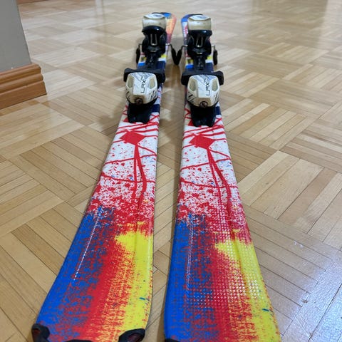 Lasten Dynastar laskettelusukset. Pituus n.119cm. Lisäksi sauvat 95cm.