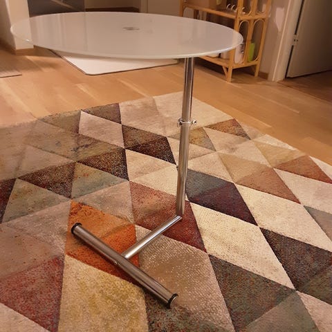 Musta kaksitasoinen sivupöytä/kukkapöytä.