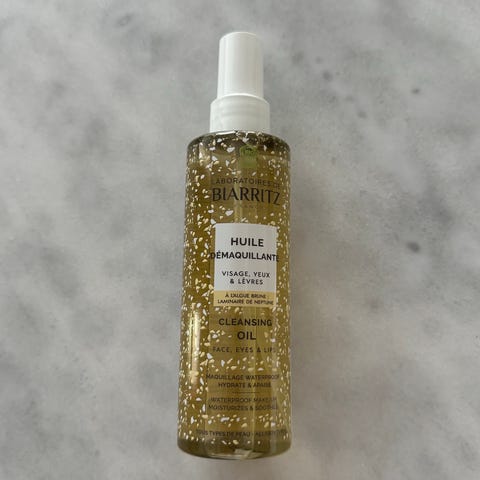 Tämä puhdistusöljy poistaa meikin, aurinkovoiteen ja päivän epäpuhtaudet ,myös vedenkestävät tuotteet jättäen ihon puhtaaksi, pehmeäksi ja tasapainoiseksi. Silkkinen, kaksivaiheinen koostumus puhdistaa ihoa kuivattamatta tai jättämättä raskasta tunnetta. Raikas ja yksinkertainen alku iltarutiineillesi, kun haluat ihon tuntuvan puhtaalta ja vapaalta hengittämään. Täysin käyttämätön Ovh~ 12€.