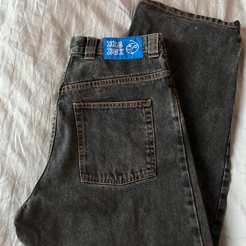 Tästä halvalla laatu polarin big boy mustat farkut s koossa, täydellisessä kunnossa mutta housujen pituutta on leikattu niin että minulle 170cm pitkä sopivat