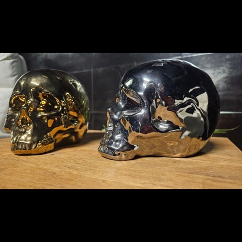 Hieno pääkallopatsas joka on umpinainen ja keramiikasta valmistettu hieno hyllykoriste. Korkeutta noin 16cm ja leveimmiltään noin 15 cm. Nouto posti tai toridiili.