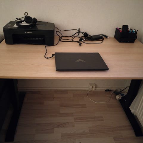 Sähköpöydässä kiinni kunnon pyörät, johtokouru, jatkojohto, pöytäkoneteline ja pitkät viiden metrin jatkokaapelit jatkojohdolle sekä näytölle displayport 2.1 8k näyttökaapeli yhtäpitkällä virtajohdolla. Toinen magneettinen harmaa johtokäärme ja toinen musta muovinen johtosukka. Pöytä on nyt kahdessa osassa, mutta voidaan nostaa pystyyn kasaan kun kauppoja tehdään, eli vain nouto ja käteismaksu. Hinta 170euroa. Ei ole ollut vuoteen käytössä.
