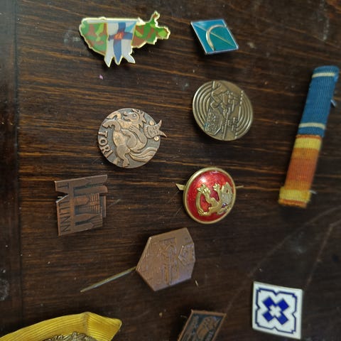 Neuvostoliiton sotilaspinssejä 2kpl, Toinen maailmansota sekä lapin sota Murmanskin puolistajille. 2kpl Moskovan olympialaisten pinssejä v.1980 ja Kiovan dynamo jalkapallojoukkueen fani pinssi.