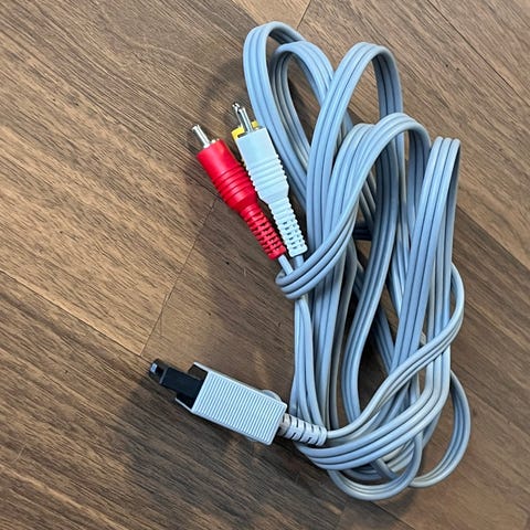 Tämä on Nintendo Wii -konsolille tarkoitettu komposiitti AV-kaapeli, joka tunnetaan myös mallinumerolla RVL-009.